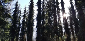Siellä taas oli tiheätä nuorta kuusikkoa, ainakin olivat pystyssä, joten kulkemaan pääsi pujotellen. Matka eteni ”mututuntumalla”, joten tietysti kuku johti liikaa vasemmalle(koilliseen) ja menimme joen mutkasta ohi.