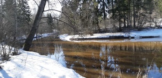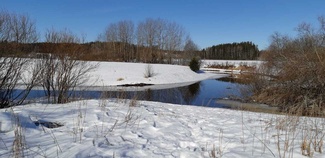 Virittelimme lumikengät jalkaan ja lähdimme taivaltamaan kohti Vantaanjokea. Joen lähellä on entisen Nummenkärjen tiilitehtaan savennostokuoppia. Niiden välistä taivalsimme kohti Vantaan ja Kytäjoen yhtymäkohtaa peltoa pitkin. Savikuoppien alue / Vantaanjoen reuna on varsin pusikkoista aluetta, siis myös hyvää lintujen seurantaan kevään edistyessä.