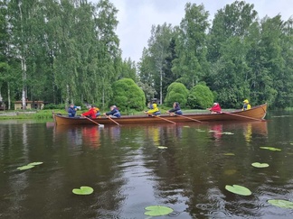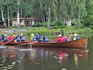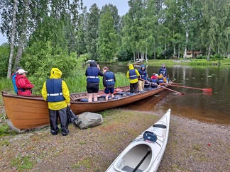 Oitin uimarannalla olikin jo iso kirkkovene rannassa, Soutelumestari Juhola ohjeisti Matin sukulaisia istumapaikoille ja soututekniikan saloihin.