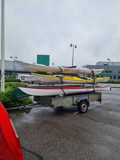 Puskimme päin vastatuulta kohti Oitin rantaa jo puolimatkassa, kun Matti otti meidät kiinni, sellainen 85 v päivänsankari. Melasimme yhdessä rantaan, kalusto taas kärryyn ja matkan. Kahville ja ”jälkimelonnalle” oli taas tarvetta, Ullan Pakari meni juuri kiinni,kun kurvasimma pihaan, joten seuraava stoppi olikin oman kylän ABC, hyvin maistui kahvi ja paakelsi.