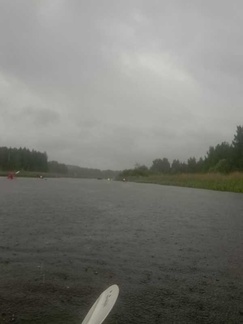 Ennen Haminan kylää rupesi roiskimaan vettä enemmänkin, kajakkimelojat säästyivät enimmältä kastumiselta, mutta avokanootissa ja veneessä olijat kastuivat, jos ei ollut hyvää sadeasua päällä. Mutta eihän se pieni märkyys näin kesällä haittaa.