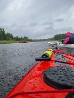 Melomaan olimme taas lähdössä, vähän ripotteli vettä ja enemmänkin olisi päivän mittaan tulossa. Mutta melojallehan on vesi tuttu elementti, kanootin alla tietysti mutta kyllä sen kestää muutenkin.