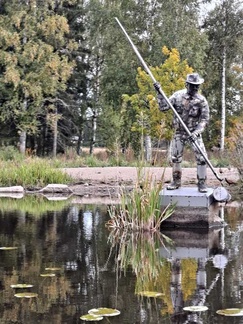 Reitillä on muutamia mökkejä ja pari isompaa kartanoakin puistoineen näkyen hyvin vesille. Toisen kartanon rannassa on metallinen tukkilaispatsas noin luonnollista kokoa. Samalla rannalla oli iso lauma fasaaneja.