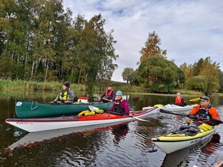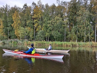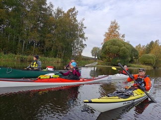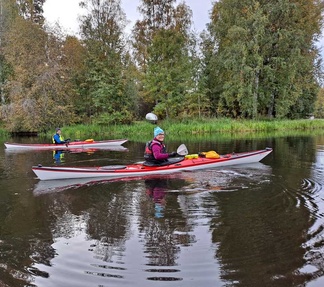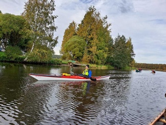 Siispä Leppäkosken venerannasta kalusto vesille ja Puujokea kohti Turenkia, keli oli oikeinkin hyvä melontaan, tuuletonta, eikä ollut liian lämmintäkään.