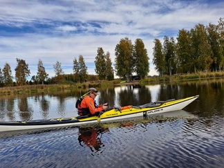 Siispä Leppäkosken venerannasta kalusto vesille ja Puujokea kohti Turenkia, keli oli oikeinkin hyvä melontaan, tuuletonta, eikä ollut liian lämmintäkään.