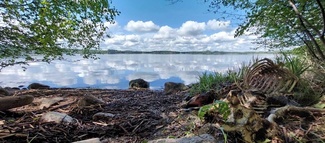 Kernaalanjärvikin oli melkein tyyni, melasimme luonnonsuojelualueen reunaa Hiidennokalle, missä on merkitty paikka melojien maihinnousulle, jopa pienehkö hiekkaranta.