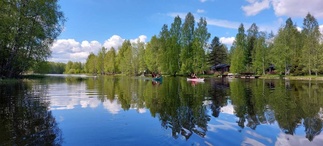 Kanootin uittoon olimme taas lähdössä, kahdeksan henkilöä, neljällä autolla ja peräkärry perässä ajelimme Janakkalaan Leppäkosken venerantaan Puujoen varteen.