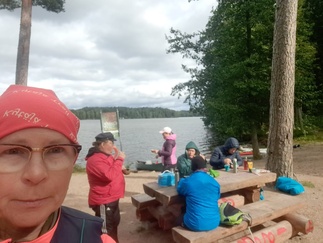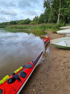 Takaisin lähtiessämme oli tuulikin hieman lisääntynyt, mutta sujuvasti sujui järven ylitys ja joellahan se ei isommin vaivannutkaan. Alasjärven venerannassa kalusto taas kyytiin ja Ullan Pakariin ”jälkimelonnalle”.
