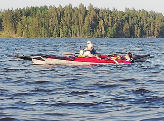 Ehkä kaikista tärkein asia, johon koulutuksessa perehdyttiin oli kaatuneesta kajakista pelastautuminen. Pätevän ohjaajan opastuksella, teoriassa ja käytännössä, asia käytyiin läpi. Opista on varmasti hyötyä ja se lisää turvallisuutta omilla melontaretkillämme.