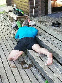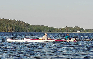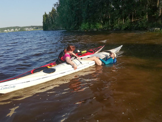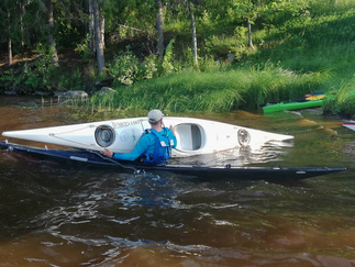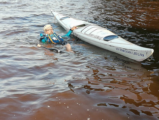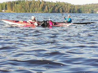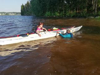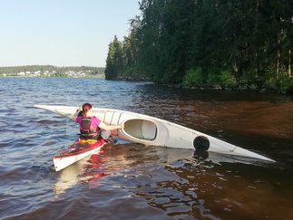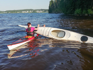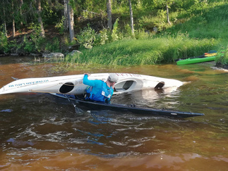 Ehkä kaikista tärkein asia, johon koulutuksessa perehdyttiin oli kaatuneesta kajakista pelastautuminen. Pätevän ohjaajan opastuksella, teoriassa ja käytännössä, asia käytyiin läpi. Opista on varmasti hyötyä ja se lisää turvallisuutta omilla melontaretkillämme.