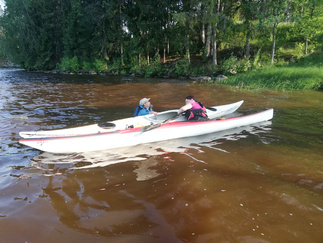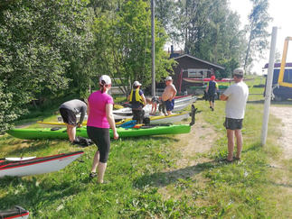Suomen Ladun melontatekniikkakoulutus tapahtuma järjestettiin Rytkön leirikeskuksen rannassa helteisenä keskiviikkoiltana. Koulutusta varten oli lainattu yksikkökajakkeja eri tahoilta, sillä Hyvinkään Ladulla ei ole omia yksikköjä riittävästi omasta takaa. Osalla osallistujista oli toki omaa kalustoa mukana.