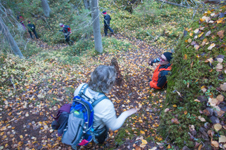 Miilun patikkaan osallistunut joukko jakaantui siis pian Iso-Karhulammen nuotiopaikalta lähdettyämme. Sovussa lähdimme, kaksi ryhmää eri suuntaan.