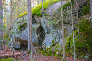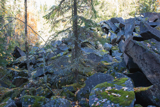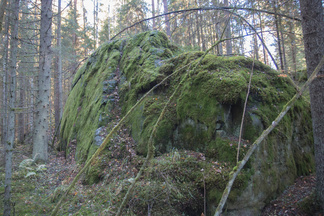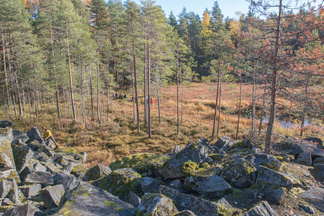 Aikanaan matka jatkui louhosmonttu kiertäen kalliomäelle. Tässä porukka jakaantui, minä jatkoin 6 hengen kanssa Kaksoislampien kautta Latu-Miiluun ja muu porukka (23 h)