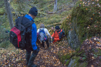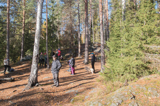 Kävelimme Aarinnansuon kautta ulkoilureittiä Iso-Karhulammelle nuotiotauolle, matkalla tieten pysähdeltiin ja kerrattiin maastoja ja historiaa.