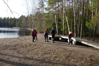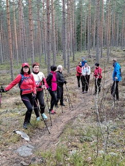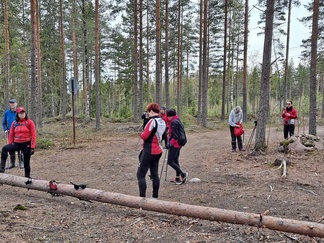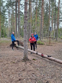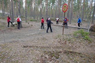Auringon paistaessa ja käen kukkuessa taivalsimme reipasvauhtisen, 10,5 km pituisen matkan kuivilla neulaspoluilla noin kahdessa tunnissa. Maasto oli melko kuiva ja reitti oli hyvin valittu.