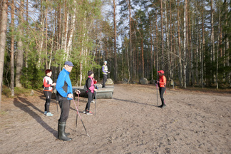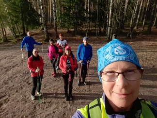 Hyvinkään Ladun aloitellaan usean vuoden tauon jälkeen sauvakävelytoimintaa. Ensimmäinen sauvakävelylenkki Tuula Juholan vetämänä kierrettiin Erhylän mukavilla poluilla. Rauhannummen hautausmaan takaparkki toimi lenkin lähtöpaikkana ja keväisen illan lenkille lähti vetäjän lisäksi yhdeksän sauvakävelijää.