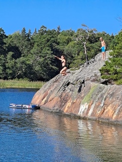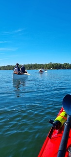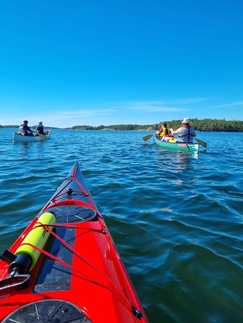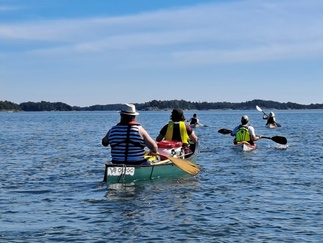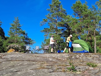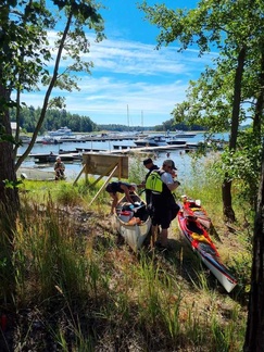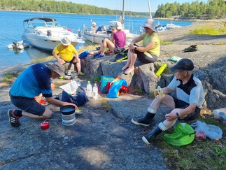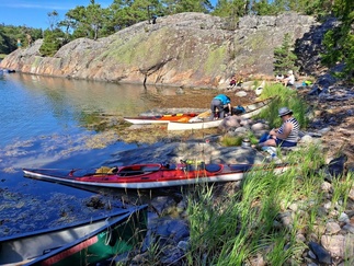 Keväällä retkiä suunnitellessa kaikkia tapahtumia ei voi huomioida ja kaikista ei ole mitään ennakkotietoa. Tälle viikonlopulle sattui paikkakunnallakin monen moista tapahtumaa ja melonta-alueemme lähellä Hangossakin oli moottorivenekilpailut, siksi porukkaa oli liikkeellä.