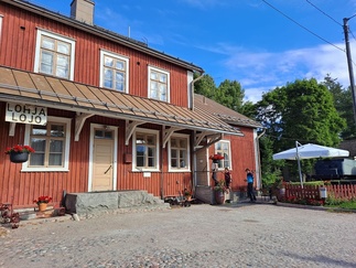Matkaa teimme Hankobaanaa, kahvit lisukkeineen kävimme nauttimassa Lohjan tavara-aseman kahviossa. Tammisaaressa käännyimme Baggön suuntaan, ajoimme Skäldön lautalla yli Skärlandetin saareen ja sen länsipäähän Sommaröhön. Autoillekin löytyi p-paikka.
