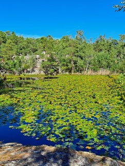 Modermagen oli pienehkö monimuotoinen saari normipalveluineen, puucee, tuli- ja telttapaikkoja sekä luontopolku. Lounastimme ja kiersimme hienon luontopolun, pituudeltaan n. 1,5 km.