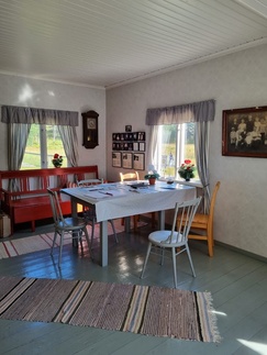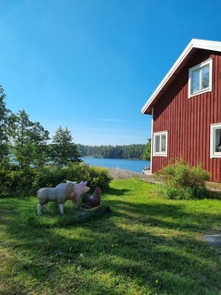 Rantauduimme Rödjanin museotilan rantaan. Museo on entinen kalastajatila, sieltä löytyy avoin museotupa, varaussauna, ja samat palvelut kuin muuallakin. Siisti pihaympäristö ja lammashaka, taisi olla viisi lammasta. Päivystävä opas mahtoi olla kalassa, kun ei näkynyt.