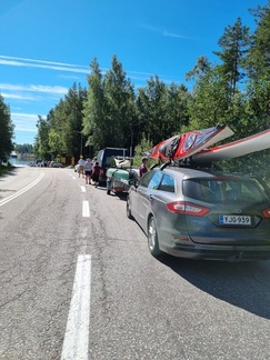 Kalusto ja tavarat kyytiin ja taas matkaan, nyt kummipyörillä. Ajoimme Tammisaaren venerantaan parkkiin, nyt jätimme kanootit kärryyn ja auton katolle, suuntasimme Italialaiselle A…. jäätelökioskille. Hyvältä maistui ja oli riittävästi. Sieltä sitten Hankobaanaa kotia kohti ja kalusto parkkiin, siinähän se taas oli. Aikaa kului se viikonloppu lauantaista klo 9 sunnuntaihin klo 18. Melontamatkaa tuli lauantaina n. 14 km ja sunnuntaina n.15 km, autoilua hieman enemmän.