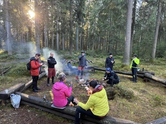 20 kuskia lähti matkaan kohteena Hyrian havaintometsässä Märkiössä sijaitseva Karhunummen laavu, joka oltiin saatu koulun puolesta tapahtumaan käyttöön.