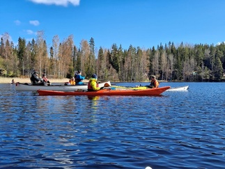 Aamuaurinkoa kohti melottiin, Akin saaren jälkeen suunta vaihtui etelään. Niittylahden taukopaikalla pidettiin pieni kelluntatauko.
