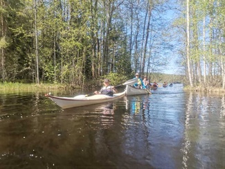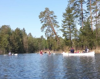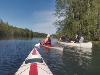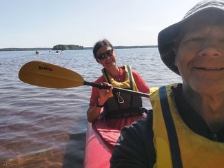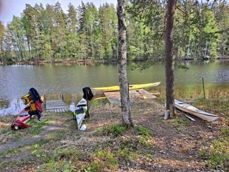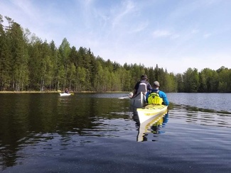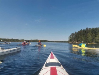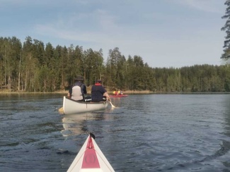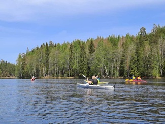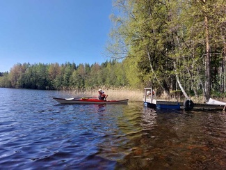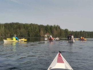 Siitä vielä tauon jälkeen Punelian perälle asti, kiersimme perälahdessa pienen saaren osa eri suuntaan, ja tulihan siinä tuttuja vastaan, muuten oli hiljaista, pari moottoria koko melonnan matkalla.