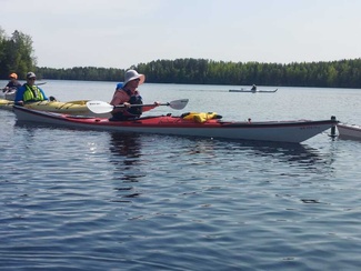 Siitä vielä tauon jälkeen Punelian perälle asti, kiersimme perälahdessa pienen saaren osa eri suuntaan, ja tulihan siinä tuttuja vastaan, muuten oli hiljaista, pari moottoria koko melonnan matkalla.