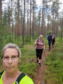 osallistujaa. Juuri ennen lenkkiä sadekuuro kasteli Erkylän polut niin, että saimme reippailla koko 9,4 km lähes trooppisessa kosteudessa, lämmössä ja auringonpaisteessa.