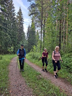 osallistujaa. Juuri ennen lenkkiä sadekuuro kasteli Erkylän polut niin, että saimme reippailla koko 9,4 km lähes trooppisessa kosteudessa, lämmössä ja auringonpaisteessa.