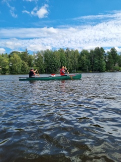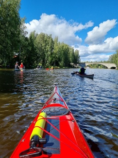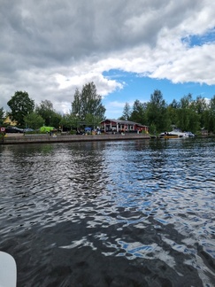Mierolan siltakahvilassa taas tauolla, joillekin maistui ruokakin, toiset selvisivät kahvilla ja lisukkeilla. Siintä vielä loppumatka kohti Hämeenlinna, keli edelleen mitä mainioin. Loppuvedot ohi Aulangon hotellin ja ali rautatiesilla kun kanootin keula tavoitti taas rannan. Eli siinähän se melonta.