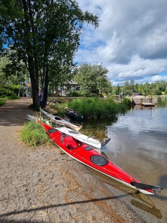 Kukn heräili omia aikojaan, aamupalan ja telttojen purun jälkeen tavarat taas kanootteihin ja samaa reittiä takaisipäin. aurinko paistoi nyt suoraan nassuun. Mervin kylän rannassa poikkesimme jaloittelemaan, n. puolimatkassa Hattulaan .Tilallinen oli luovuttanut rannan kylätoimikunnalle kunnossapitoa vastaan. Oli uimakoppi, puucee, lapsille leluja ja, hiekkaranta, tukeva laituri, näinkin voi toimia.