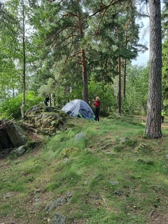 Teltat pystyyn ja pari riippumattoa roikkumaan, ruokailua ja illanviettoa. maisemat olivat hienot Vanajaveden suuntaaan koska olimme muutamia metrejä veden pinnasta.