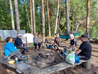 Muitakin retkeilijöitä oli paikalla, vain me olimme tulleet vesitse. Paikka oli rauhallinen, kukin askarteli omiaan, ohimennen vaihdettiin kuulumisia. Yö oli lämmin ja sateeton, edes aamulla ei ollut kastetta.