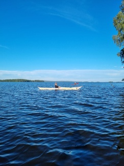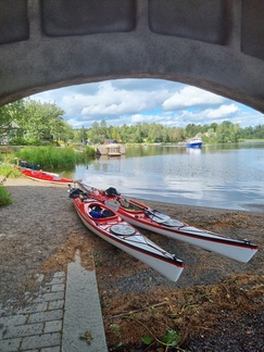 Mierolan siltakahvilassa taas tauolla, joillekin maistui ruokakin, toiset selvisivät kahvilla ja lisukkeilla. Siintä vielä loppumatka kohti Hämeenlinna, keli edelleen mitä mainioin. Loppuvedot ohi Aulangon hotellin ja ali rautatiesilla kun kanootin keula tavoitti taas rannan. Eli siinähän se melonta.