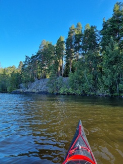 Lepaan puutarhaopiston kohdalla harkitsimme jaloittelutaukoa, mutta melasimme sitten perilla asti. Rantautuminen oli hieman hankalaa, mutta onnistui hyvinkin. Ulkoilualue on kallion päällä, eri tasolla olevia tasanteita, muutama nuotiorinki, katos yhdessä ja puuceekin oli.