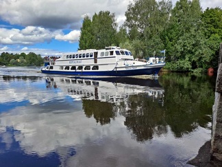 Kahvipaussin aikana Hopealinjan laiva ajoi molempiin suuntiin, hyvä näin, moottoriliikennettä väylällä oli muutenkin riittävästi, Väylä on paikoitellen kapea ja merkitty moottoreille. Eli melojat pysyttelevät merkityn väylän ulkopuolella, välillä täytyy kuitenkin mennä väylän ylikin.