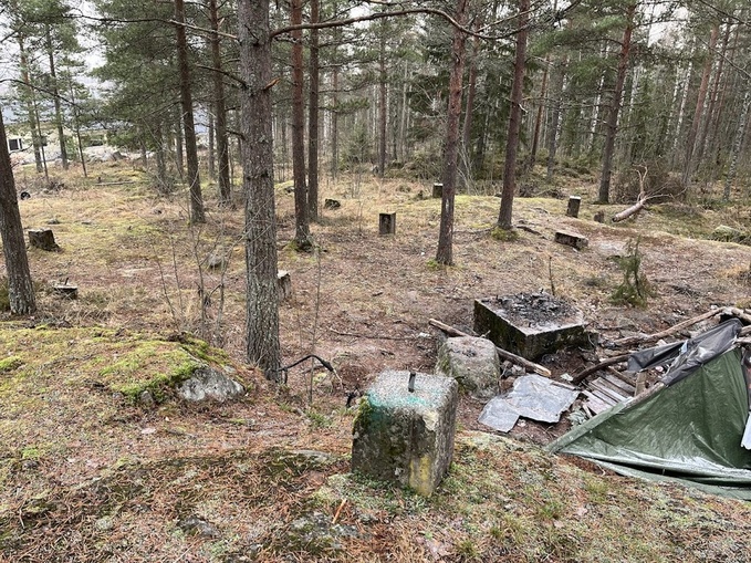 Paluumatkalla päätimme kavuta vilkaisemaan Tapainlinnan (Pavin) tanssilavan tienoota. Kalliolla, jossa tuo tanssipaikka oli ollut, on jäljellä lipputangon jalka, portinpielet ja rakennuksen betonista valetut jalat. Tanssilavakulttuuri kukoisti 50-60 luvulla ja sen ajanjakson jälkeen lava purettiin.