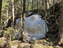 Pyörähdimme Kaksoislammen laavulla pikaisesti ja jatkoimme matkaa polulle, joka johdatti retkikuntamme kohti Karhusuota ja Iso-Karhulampea. Hetkisen huilattuamme jatkoimme Karhusuon eteläpäähän ihmettelemään korkeita ja pyöreämuotoisia kalliopaasia. Muinaisen tulivuoren nostattama kiviaines on paisunut pullataikinan tavoin pyöristyneeksi. Havaitsimme, että kalliokiipeilijät, boulderoijat olivat koetelleet taitojaan kalliopaaden kupeessa. Boulderointi on kiipeilyä ilman varmistusvälineitä matalilla korkeuksilla. Korkeitaan siinä käytetään jonkinlaista patjaa alustana, mikäli ote lipeää ja kiipeilijä tipahtaa alas. Itse emme edes yrittäneet siitä nousta ylös kalliolle.