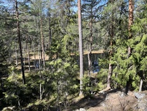 Saavuttuamme Pikku-Karhulammen itäpuolen kallioalueen pohjoispäähän tuumailimme, josko jaksamme nousta kallion päälle. Voimia tuntui riittävän, siksi kiipesimme ylös. Näköala kallion päältä on hieno ja tuumailimme, että tänne kannattaa tulla vastakin.