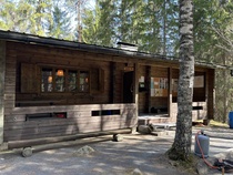 Retken kääntöpisteeksi oli valittu Latu-Miilun ulkoilumaja, jossa meitä odottamassa oli Kalevi. Hän oli saanut etukäteisinformaatiota retkeläisten lukumäärästä ja oli valmistautunut tarjoilemaan joukolle kahvia, pullaa ja virvokkeita. Makkaranpaistokin olisi onnistunut kaasugrillillä, mutta kukaan ei siihen ryhtynyt. Virkistäytyneinä, reilun puolentunnin tauon jälkeen jatkoimme matkaa nousten polkua pitkin kallioille, kohti Kaksoislampia. Ihailimme kalliolla maiseman vaihtelevuutta ja pohdiskelimme vaijeriliukumäen pituutta. Luonnonihme, kalliokuusi ihmetytti retkeläisiä polun reunassa.