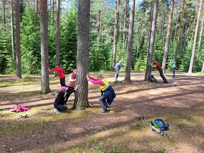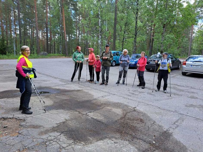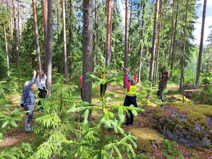 Aamun Hyvinvointia liikunnasta -liikuntatuokio pidettiin 11.6. 7+2 hengen ryhmällä Sveitsin luonnonpuistossa. Mukaan saatiin myös nuoremman polven edustaja ja hyvin jaksoi hänkin. Sauvakävelyn ohella aistittiin metsän tuoksuja, venyteltiin ja jumpattiin. Kesä pidetään taukoa, syksymmällä jatketaan. Kiitos osallistujille ja hyvää kesää toivottavat Anneli ja Tarja.