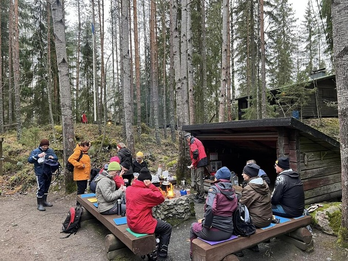 Reitti kulki Kaksoislampien kautta Ladun majalle jossa Timppa odotti ryhmää kahvin ja pullan kanssa.