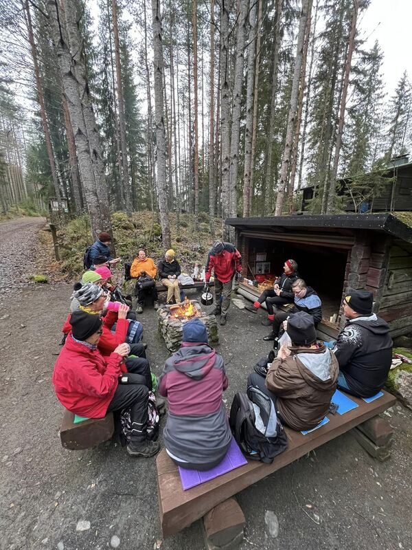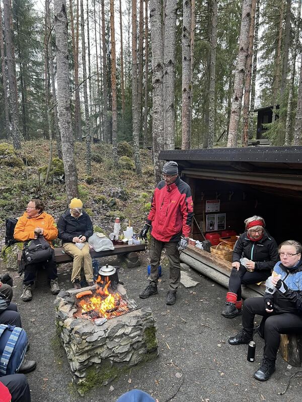 Reitti kulki Kaksoislampien kautta Ladun majalle jossa Timppa odotti ryhmää kahvin ja pullan kanssa.