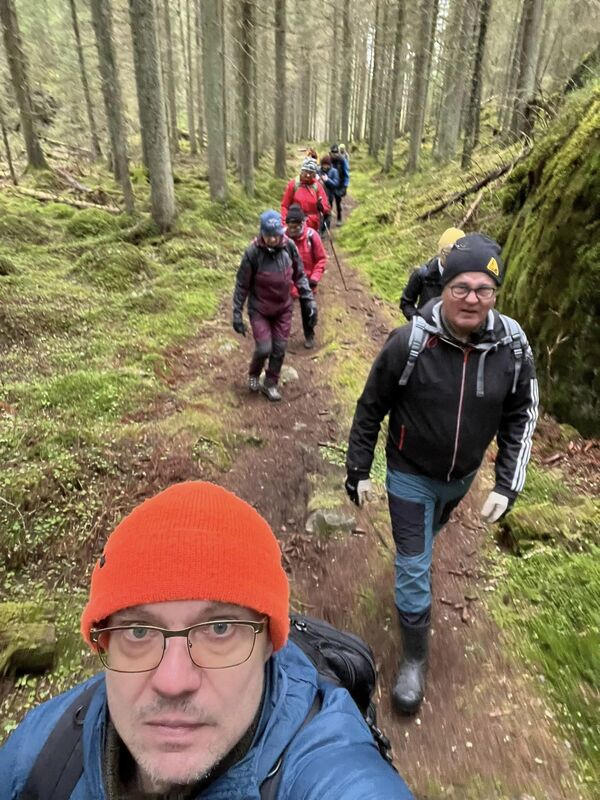 Isänpäivän patikan lähtöpaikalle kokoontui 14 hengen ryhmä.