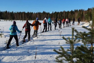 Helmikuisena sunnuntaina saimme lumikenkäillä mitä mahtavimmassa auringonpaisteessa!