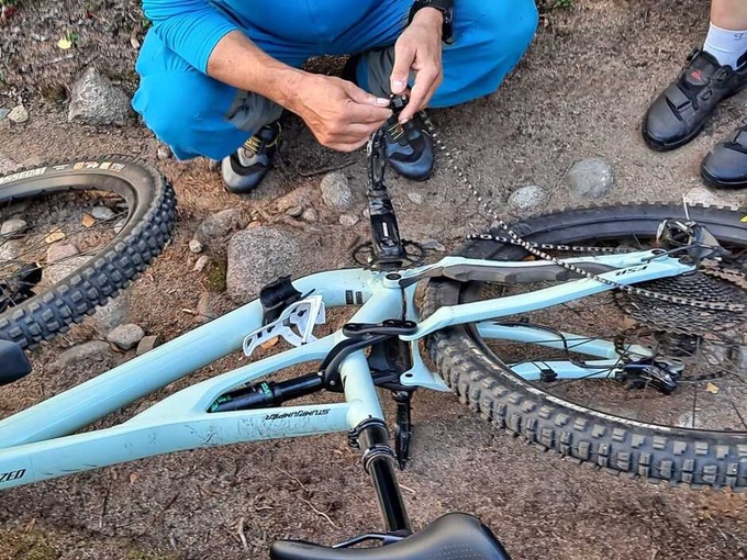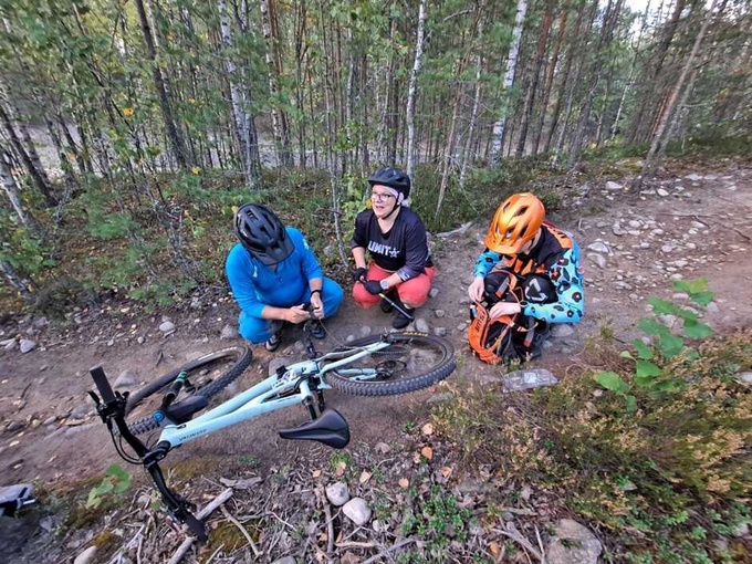 Sannan vetämässä ryhmässä edettiin 1+6 kuskin voimin ja tapahtumia riitti. Lenkki oli noin 15km mittainen, mutta painottui hieman teknisempiin polkuihin. Matkaan mahtui yhdet katkenneet ketjut, jotka saatiin kursittua kasaan kenttävarustein. Tämän lisäksi pari pyllähdystä, joista selvittiin lähinnä henkisillä kolhuilla.