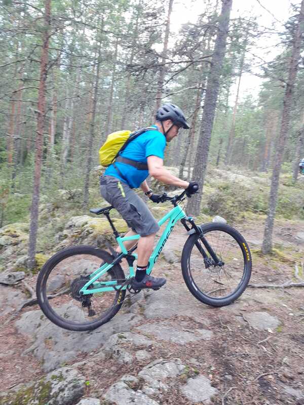 Porukassa kävivät hiomassa kallioajamisen taitojaan, nauttivat hienoista poluista ja korjailivat muutamia teknisiä pyöräongelmia reitin varrella. Yksi pieni pyllähdyskin taisi tapahtua.