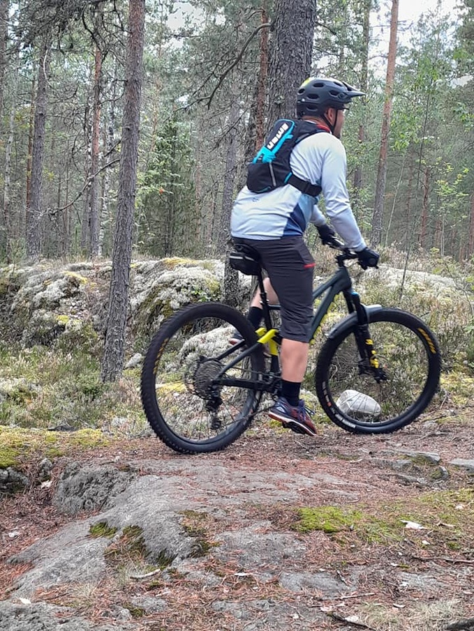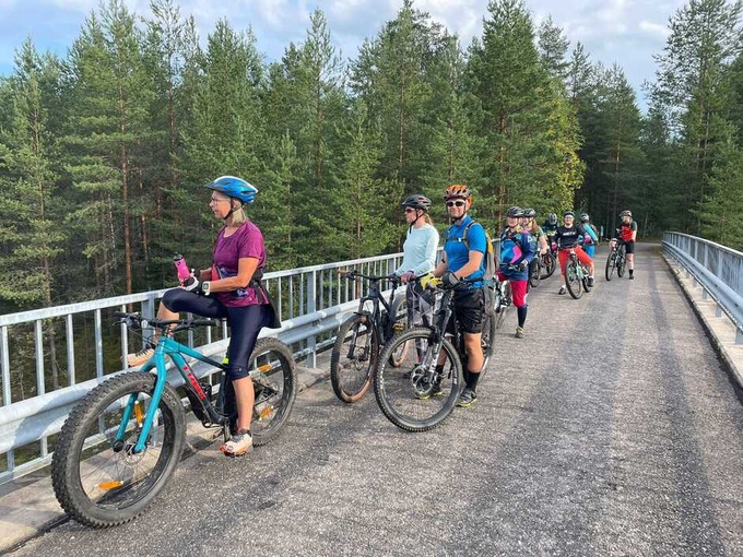 Porukassa kävivät hiomassa kallioajamisen taitojaan, nauttivat hienoista poluista ja korjailivat muutamia teknisiä pyöräongelmia reitin varrella. Yksi pieni pyllähdyskin taisi tapahtua.